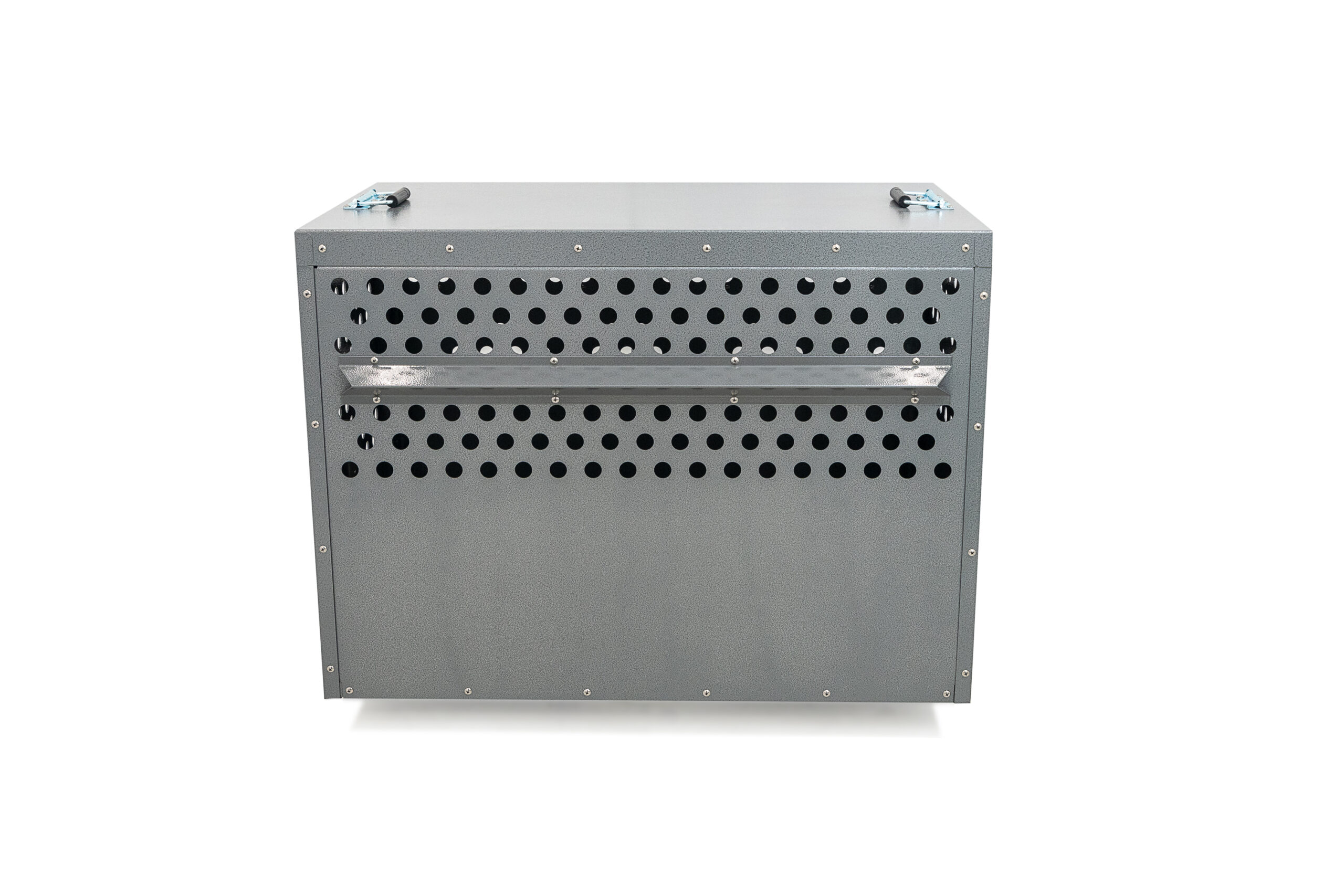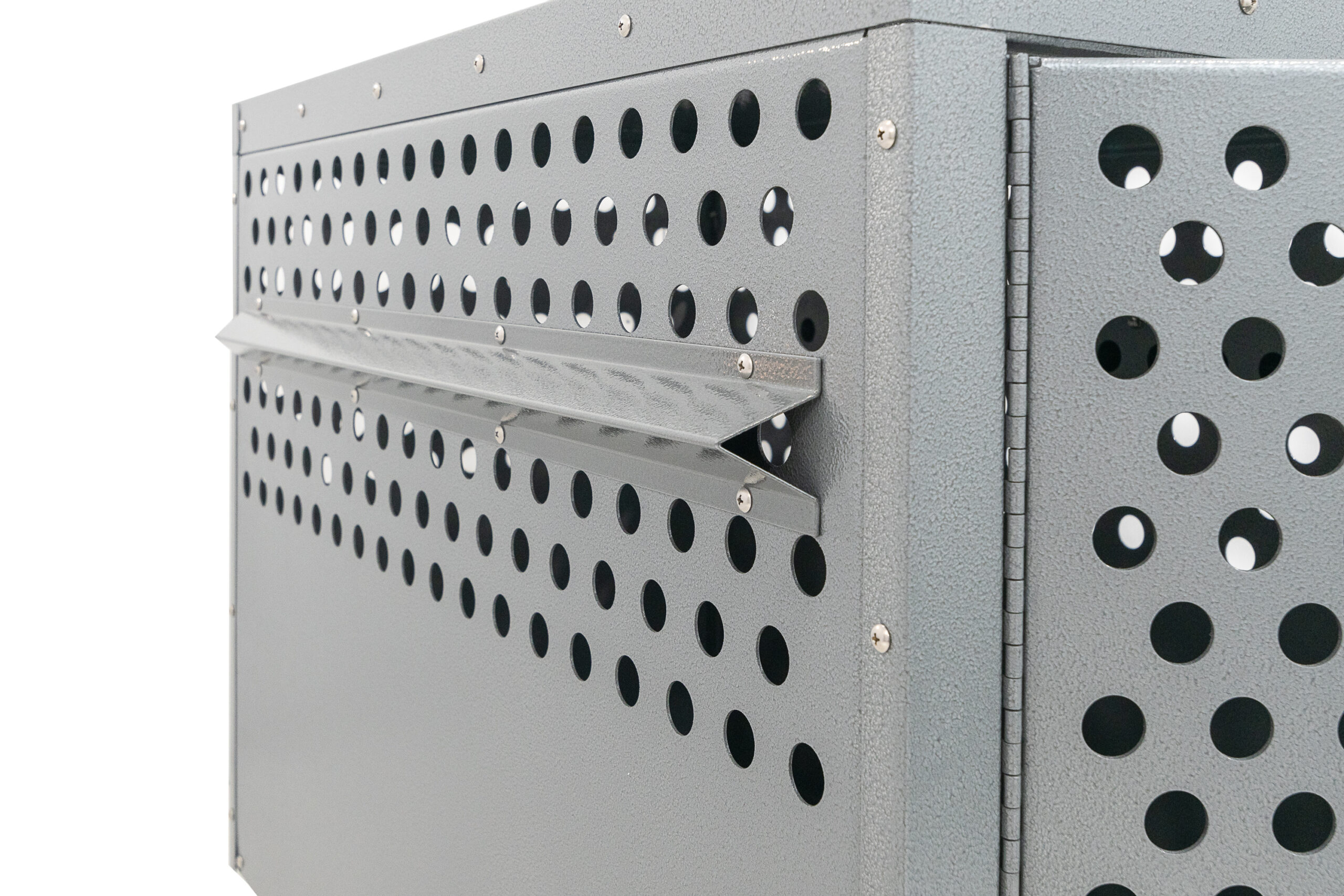 - Ventilation: A Zinger crate is fully vented on each side and along the top back wall to provide maximum comfort for your dog. Our open design allows air to pass freely thru the door aided by the triple rows of lower and upper vent holes which surround the crate. By its very nature aluminum quickly dissipates heat making it a great material to construct dog crates provided there are enough air holes. Lots of adequate venting ensures your dog will remain safe while in its crate.