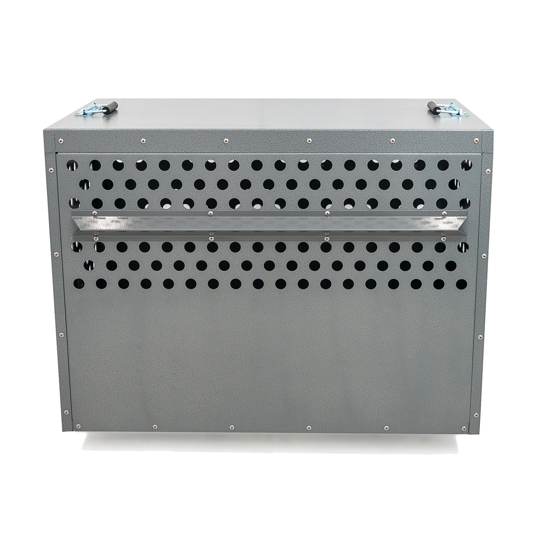 - Ventilation: A Zinger crate is fully vented on each side and along the top back wall to provide maximum comfort for your dog. Our open design allows air to pass freely thru the door aided by rows of vent holes which surround the crate. By its very nature aluminum quickly dissipates heat making it a great material to construct dog crates provided there are enough air holes. Lots of adequate venting ensures your dog will remain safe while in its crate.
