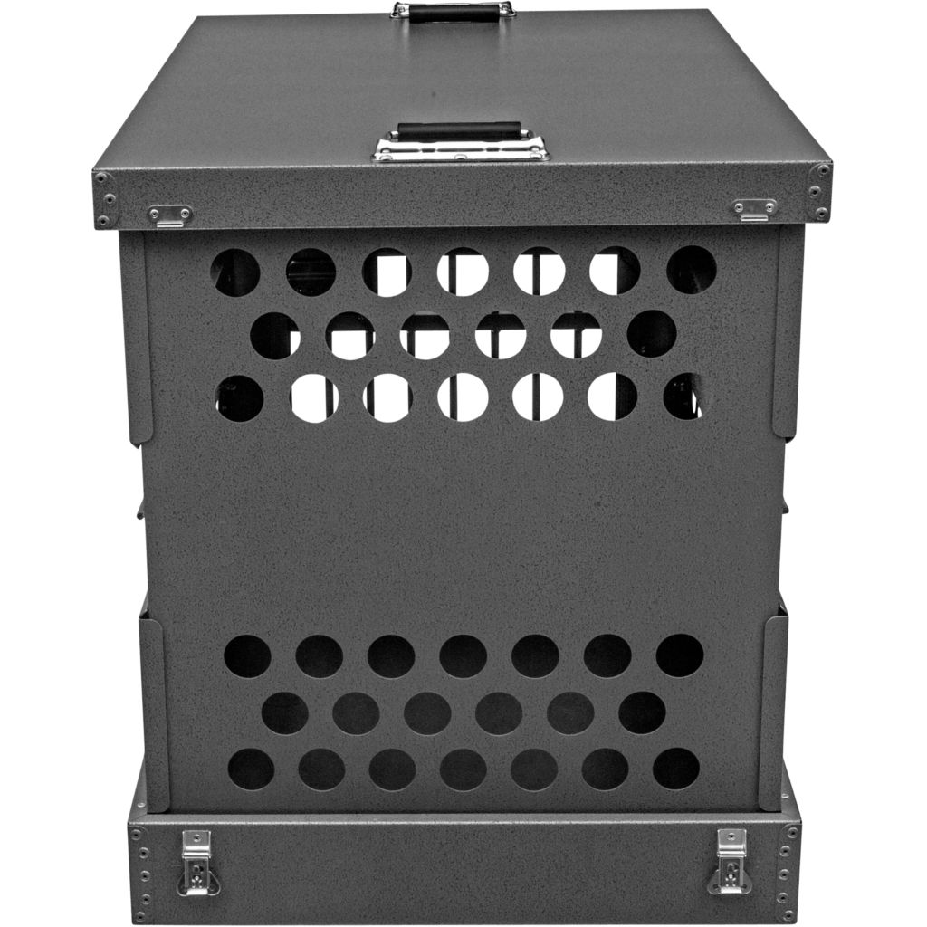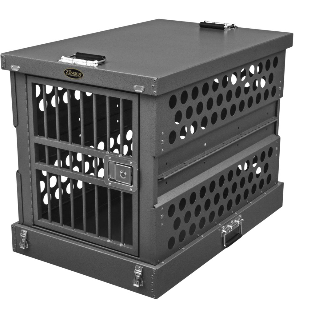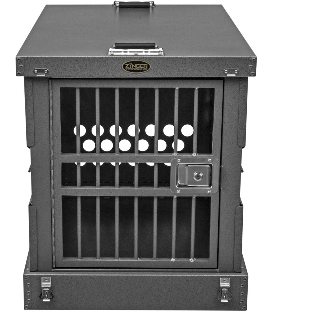 - Ventilation: A Zinger crate is fully vented down each side and along the back wall to provide maximum comfort for your dog. Our open design allows air to pass freely thru the door aided by the triple rows of lower and upper vent holes which surround the crate. By its very nature aluminum quickly dissipates heat making it a great material to construct dog crates provided there are enough air holes. Lots of adequate venting ensures your dog will remain safe while in its crate.