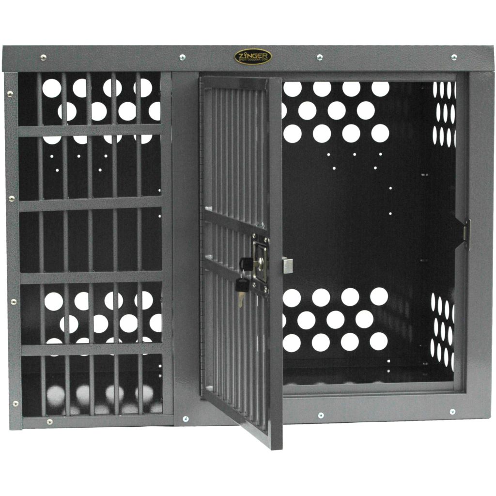 - Ventilation: A Zinger crate is fully vented down each side and along the back wall to provide maximum comfort for your dog. Our open design allows air to pass freely thru the door aided by the triple rows of lower and upper vent holes which surround the crate. By its very nature aluminum quickly dissipates heat making it a great material to construct dog crates provided there are enough air holes. Lots of adequate venting ensures your dog will remain safe while in its crate.