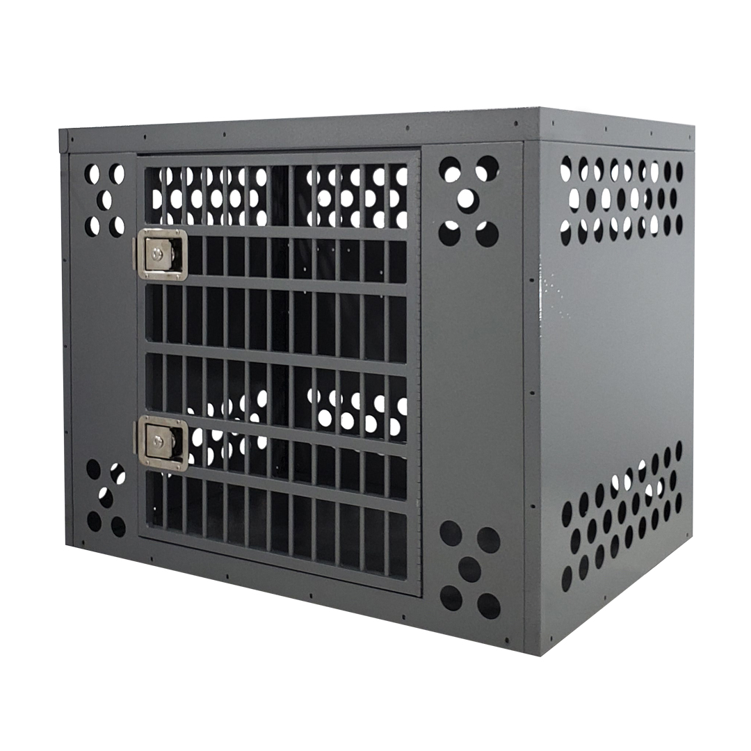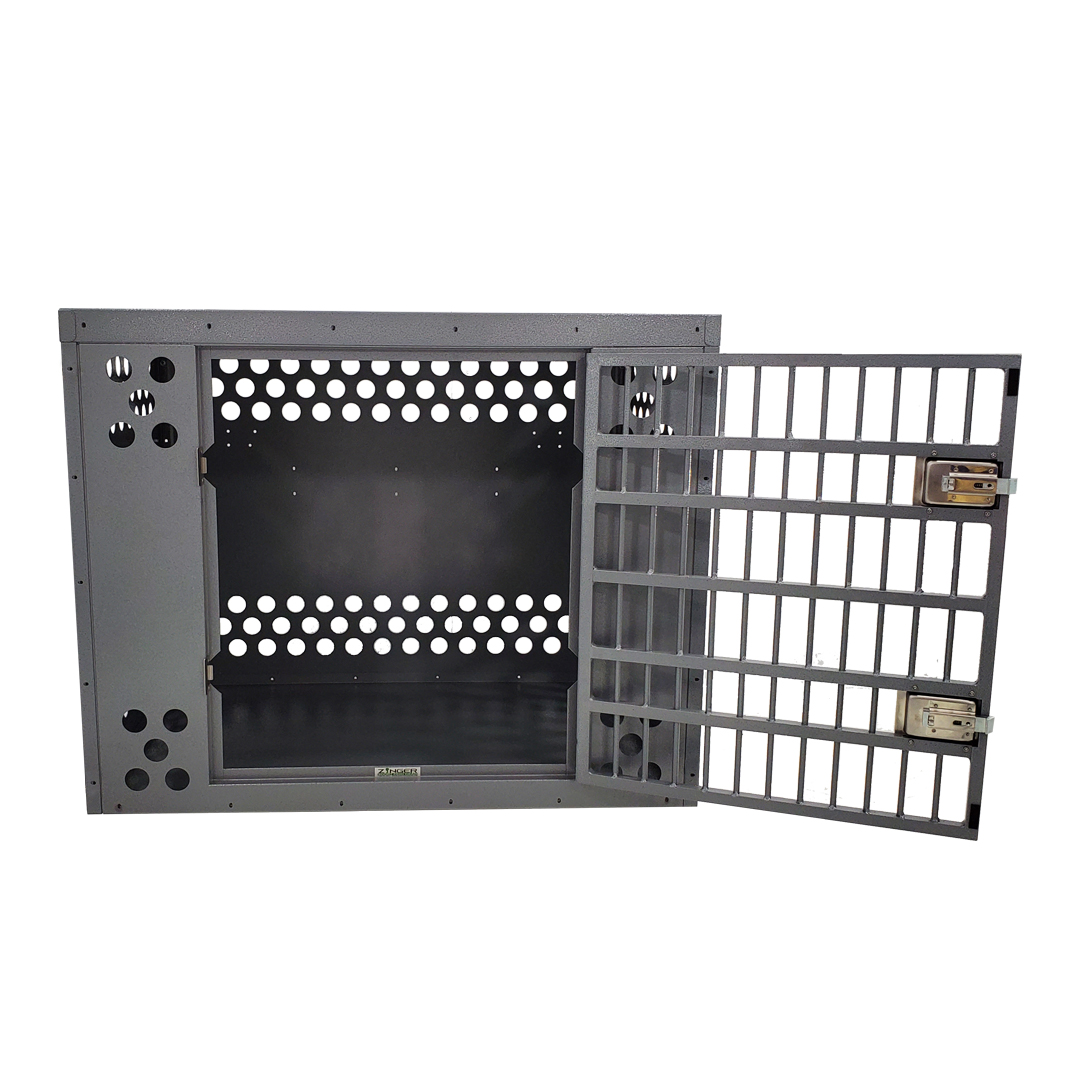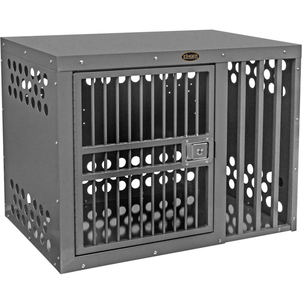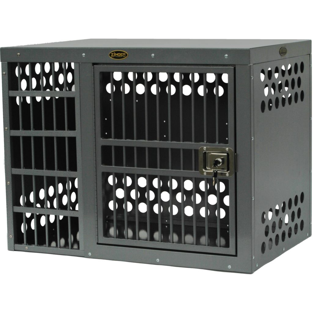 - Ventilation: A Zinger crate is fully vented down each side and along the back wall to provide maximum comfort for your dog. Our open design allows air to pass freely thru the door aided by the triple rows of lower and upper vent holes which surround the crate. By its very nature aluminum quickly dissipates heat making it a great material to construct dog crates provided there are enough air holes. Lots of adequate venting ensures your dog will remain safe while in its crate.