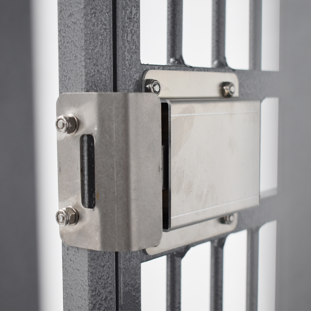 - Solid Doors: Reinforced with solid bars and welded for extra strength the door is built to last. A full length piano hinge and striker plate is standard and the door can be easily reversed to allow left or right hand opening.