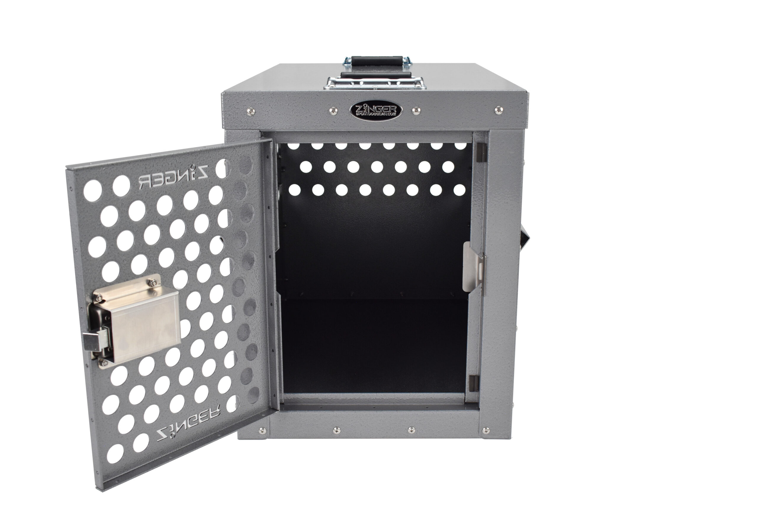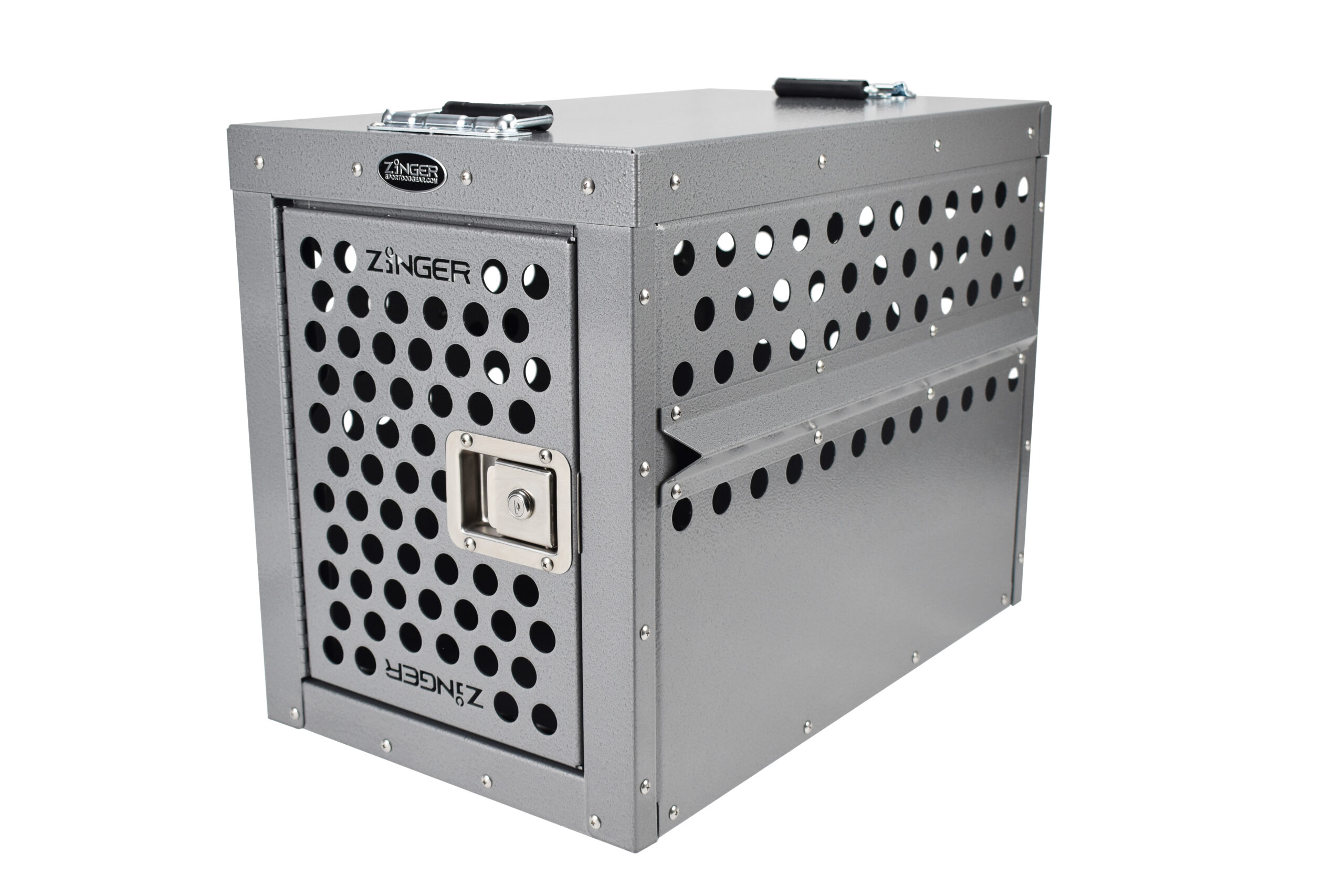 - Ventilation: A Zinger crate is fully vented on each side and along the top back wall to provide maximum comfort for your dog. Our open design allows air to pass freely thru the door aided by rows of upper vent holes which surround the crate. By its very nature aluminum quickly dissipates heat making it a great material to construct dog crates provided there are enough air holes. Lots of adequate venting ensures your dog will remain safe while in its crate.