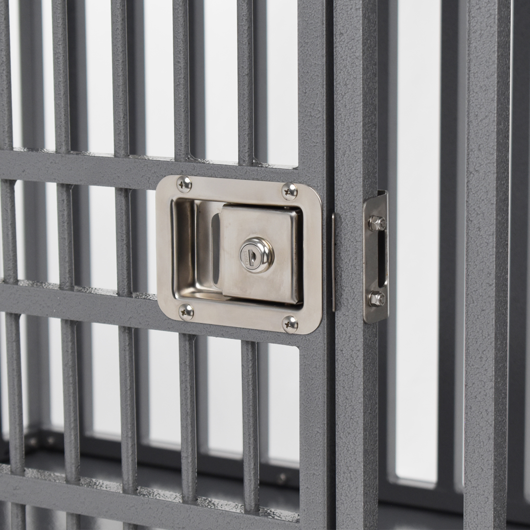 - Lockable Door Latch: Each door comes with a flush mounted door latch which is keyed for added security while you are away from the crate. Rest assured that someone cannot simply open the crate and walk away with your dog. Made from strong "stainless steel" for durability and to prevent corrosion.